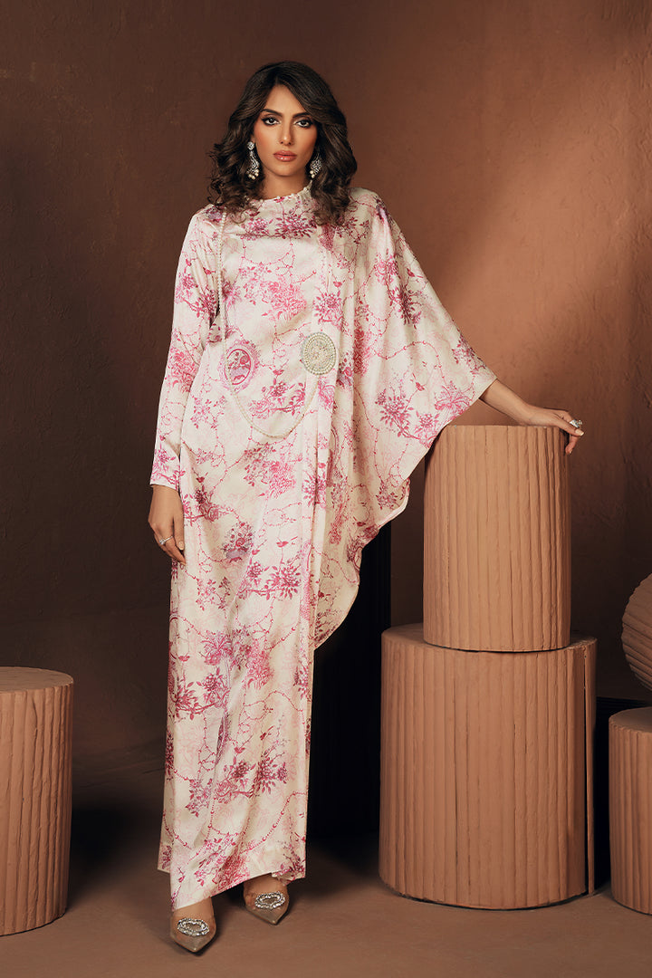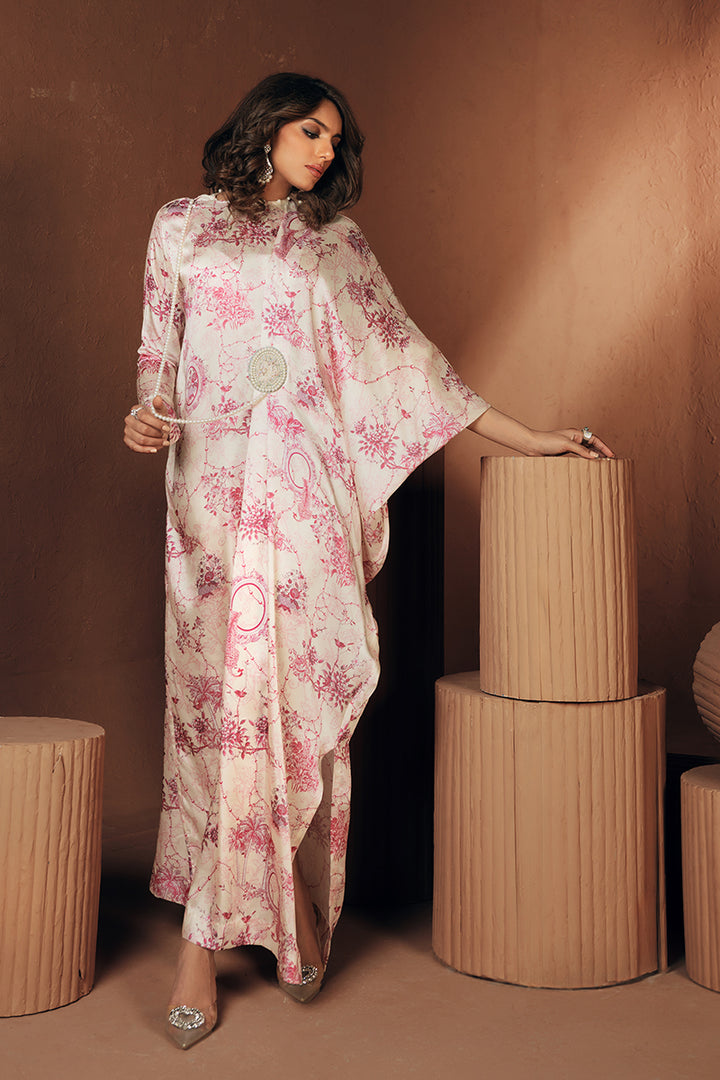 A whisper of romance and grace. This luxury custom digital printed Kaftan featuring our tiger in the Mirror Print in delicate pink is embellished with intricate pearl work to radiate effortless elegance and timeless charm.